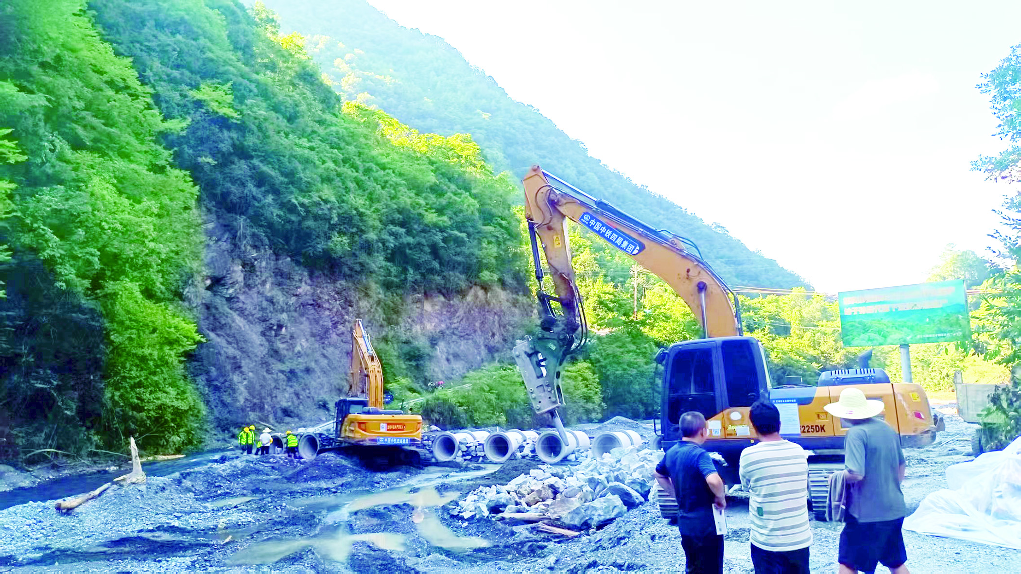 “哪怕昼夜加班,也要抢通道路!”7月23日,交通运输部门调集精干力量与机械设备,成立两个抢通工作组,分别从朱栗山村至响石村、五峰界至城五河村两个方向,同步推进庄菖线抢通作业。